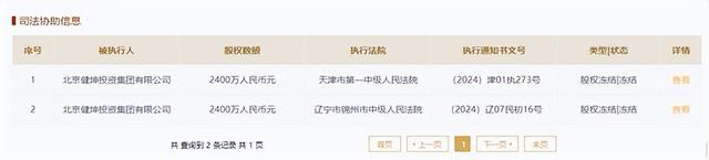 據(jù)悉,趙偉國控股公司北京健坤投資集團(tuán)有限公司,持有北京小罐茶業(yè)有限公司6%左右的股權(quán),已被天津市第一中級人民法院強(qiáng)制執(zhí)行,金額約為2.27億元,立案日期為2024年2月18日,北京小罐茶業(yè)有限公司也先后被天津市第一中級人民法院、遼寧市錦州市中級人民法院分別凍結(jié)2400萬元數(shù)額的股權(quán)。