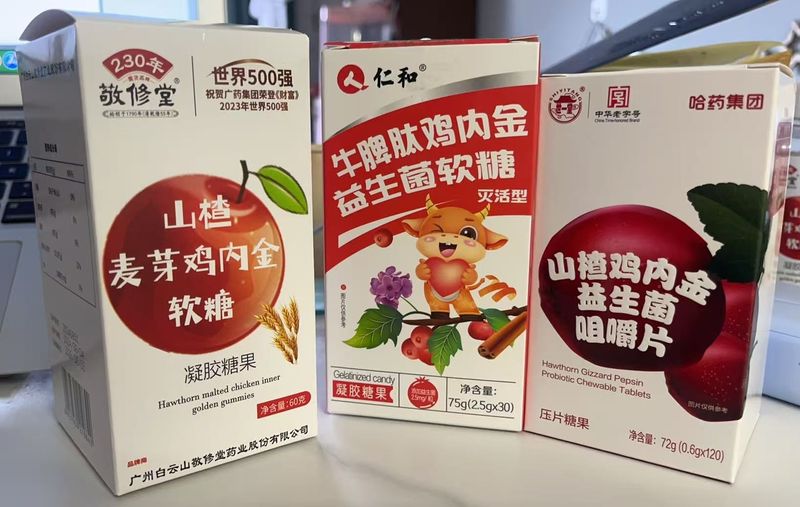 相似的情況還涉及白云山、仁和藥業(yè)等企業(yè)。其中,在中華老字號廣藥集團店,一款名為山楂麥芽雞內金軟糖的產品在售,外包裝【產品類別】顯示為植物膠型凝膠糖果,產品執(zhí)行標準為SB/T 10021。記者查詢獲悉,該標準為糖果-凝膠糖果行業(yè)標準,此前已有多個版本被廢止,現(xiàn)行版本為SB/T 10021-2017,該標準適用于凝膠糖果的系列產品的生產、檢驗和銷售。這款山楂麥芽雞內金軟糖外包裝標注【品牌商】為廣州白云山敬修堂藥業(yè)股份有限公司,據(jù)白云山財報,該公司為白云山直接控股的子公司。