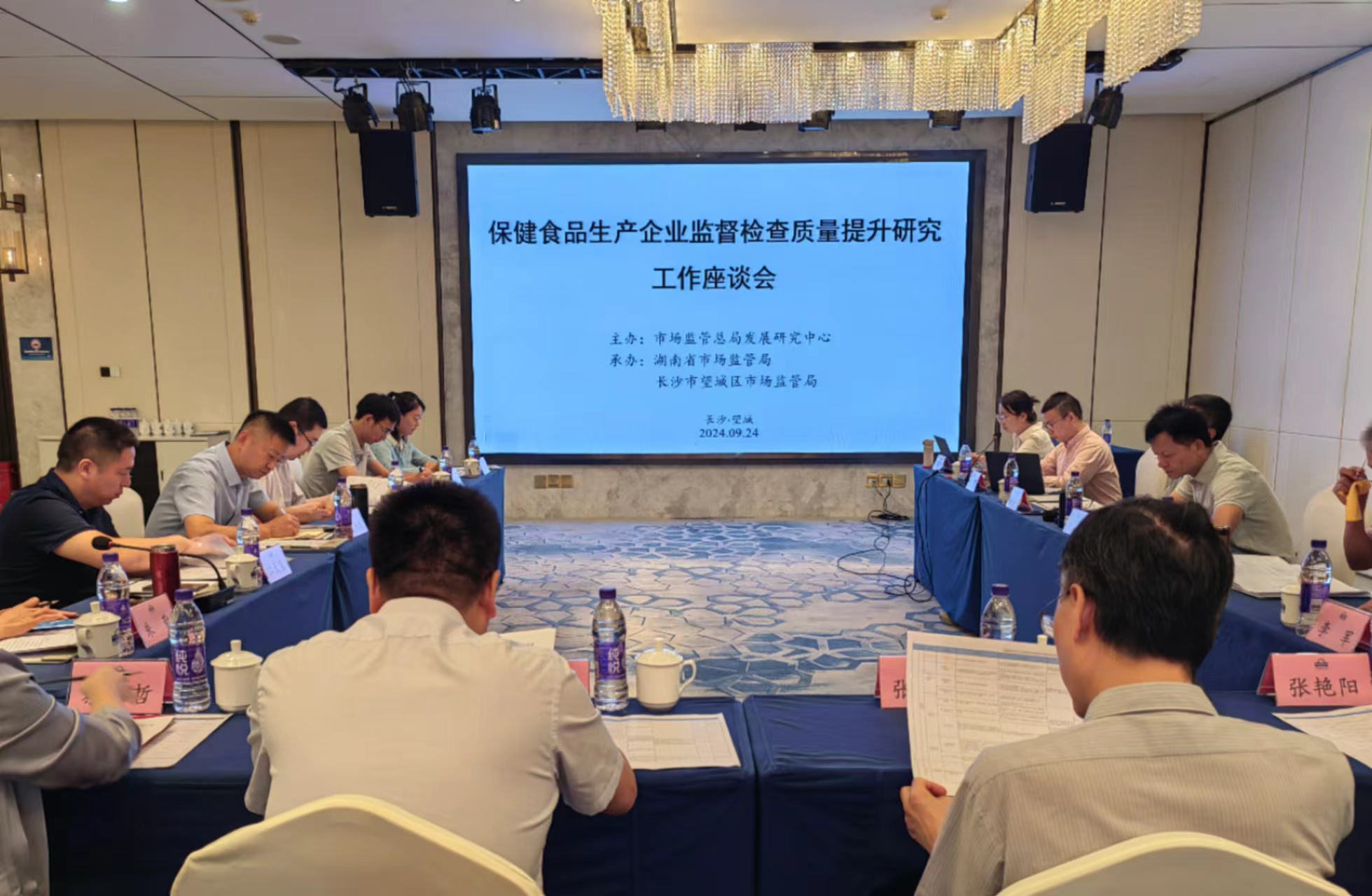 9月24日,市場(chǎng)監(jiān)管總局發(fā)展研究中心在長(zhǎng)沙召開(kāi)保健食品生產(chǎn)企業(yè)監(jiān)督檢查質(zhì)量提升研究工作座談會(huì)。市場(chǎng)監(jiān)管總局特殊食品司稽查專(zhuān)員張晉京,湖南省市場(chǎng)監(jiān)管局黨組成員、副局長(zhǎng)雷光明出席會(huì)議。